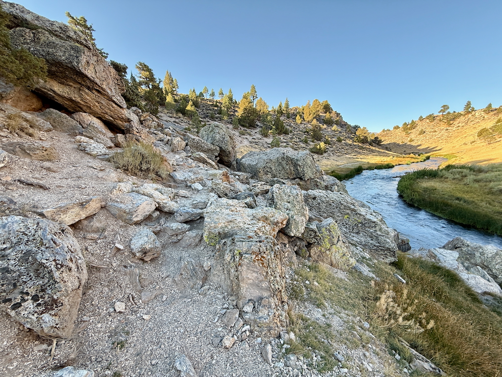 As you make your way along the river, you’ll come across a couple of big rock outcroppings. You can scramble over them if you’re feeling nimble, or usually there’s a slightly more gradual detour to avoid the climb. Just watch out for loose rock — trekking poles are handy here if you’ve got them. That said, most of the trail is pretty mellow and the scenery more than makes up for the occasional scramble.